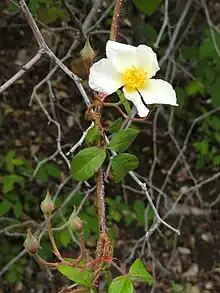 Often confused in cultivation with the cultivar 'Hybrida', of which Rosa helenae might be a parent.