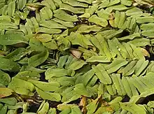 Heterosporous water fern Salvinia oblongifolia floating on water