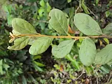 - Dendrophthoe scurrula (L.) Blume in J.J.Roemer & J.A.Schultes, Syst. Veg., ed. 15[bis]. 7: 1730 (1830)
