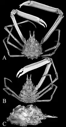 - Doflein, F. 1904. Brachyura. Wissenschaftliche Ergebnisse der Deutschen Tiefsee-Expedition auf dem Dampfer 'Valdivia' 1898–1899. 6: xiv + 314 pp., 58 pls. BHL Reference page. [page 81, page 171]
