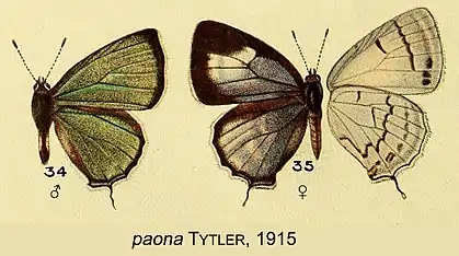 - Zephyrus paona Tytler, 1915: 131, pl.4 figs 34,35.