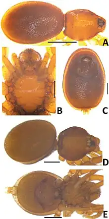 - Ranasinghe, U.G.S.L. & Benjamin, S.P. 2018. Taxonomic descriptions of nine new species of the goblin spider genera Cavisternum, Grymeus, Ischnothyreus, Opopaea, Pelicinus and Silhouettella (Araneae, Oonopidae) from Sri Lanka. Evolutionary Systematics 2: 65–80. DOI: 10.3897/evolsyst.2.25200 Reference page.