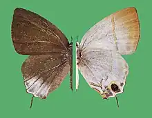 - Hayashi, H., 1976. New subspecies of Lycaenidae from Palawan. Tyô-to-Ga 27(1): 19-24, ill. web. Reference page.