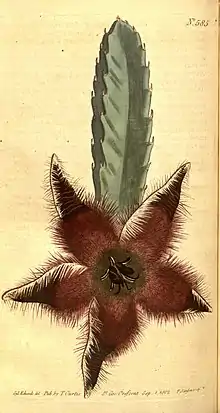 - Masson, F., 1796-1797. Stapeliae Novae : or, a collection of several new species of that genus; discovered in the interior parts of Africa. London. BHL Reference page. : 13. t. 11.