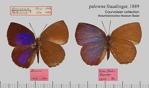 - Amblypodia palowna Staudinger, 1889: 131, pl.2 fig.3.