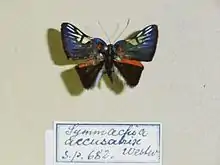 - Symmachia accusatrix Westwood, 1851: 445; Lamas, 2004: 157.