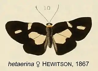 - Symmachia hetaerina Hewitson, [1867]: text, pl.45 fig.10; Lamas, 2004: 157.