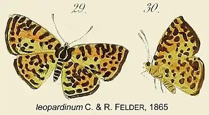 - Symmachia leopardina leopardina [sic] (C. & R. Felder); Stichel, 1910: 232.