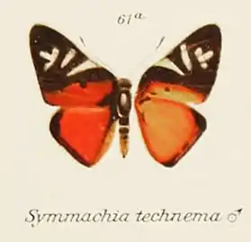 - Symmachia technema Stichel, 1910: 231, pl.26 fig.61a; Lamas, 2004: 157.