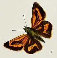 - Telicota bambusae (Moore); Moore, 1881: 170;1912: 248; Seitz, 1927: 1078, pl.168h.