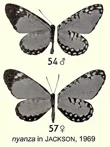- Telipna nyanza Neave, 1904: 335, pl.1, fig.19; Stempffer, 1967: 12; Jackson, 1969: 17, pl.4 figs 54,57.