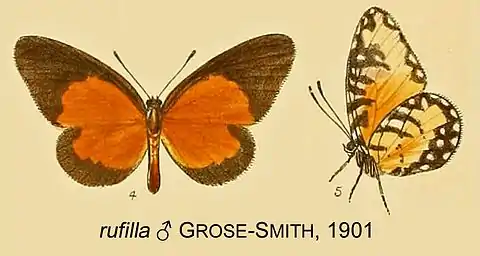 - Liptena rufilla Grose-Smith, [1901]: 133, pl.28 figs 4,5; Stempffer, 1967: 12; Jackson, 1969: 7, pl.1 figs 11,15; Libert, 2005; Williams, 2007: Pentilina 67.