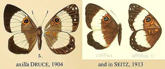 - Mesosemia albiflua Seitz, [1913]: 639, pl.125a.