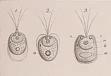 - Stein, F. von 1878. Der Organismus der Infusionsthiere nach eigenen Forschungen in systematischer Reihenfolge bearbeitet. III. Abtheilung. Die Naturgeschichte der Flagellaten oder Geisselinfusorien. I. Hälfte, den noch nicht abgeschlossenen allgemeinen Theil, nebst Erklärung der sämmtlichen Abbildungen enthaltend. pp. i–x, 1–154, pls I–XXIV. Leipzig: Wilhelm Engelmann. BHL Google Books