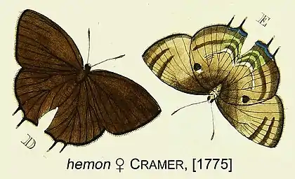 - Papilio hemon Cramer, [1775]: 30, pl.20 figs D,E.