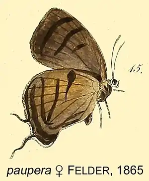 - Pseudolycaena paupera Felder & Felder, [1865]: 246, pl.31 fig.15.