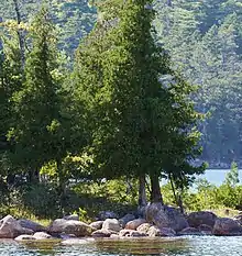Thuja occidentalis trees, Acadia National Park, Maine, USA