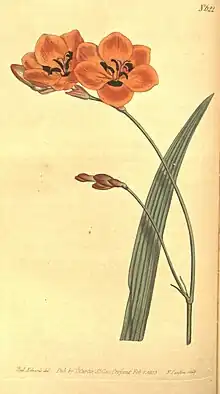 - Ixia crocata var. nigromaculata Andrews, Bot. Repos. 2: t. 134 (1797).
