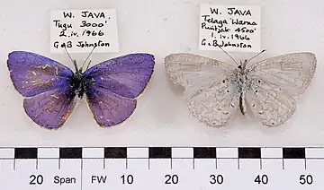 - Celastrina (Udara) dilecta paradilecta (Fruhstorfer) Toxopeus, 1928: 248, pl. 5, fig. 13 ♂ (West Java).