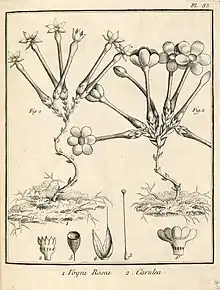- Fusée Aublet, J.B.C. 1775. Histoire des plantes de la Guiane françoise, rangées suivant la méthode sexuelle, avec plusieurs mémoires sur différens objets intéressans, relatifs à la culture & au commerce de la Guiane françoise, & une notice des plantes de l' Isle-de-France. Tome 1. Pp. I–XXIX, 30–32, 1–621. Pierre-François Didot jeune, Londres [London], Paris. BHL. Reference page. ; 209