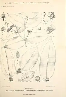 - Memecylon leucocarpum Gilg in H.G.A.Engler, Monogr. Afrik. Pflanzen-Fam. 2: 40 (1898)