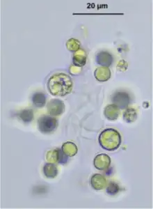 - De Wildeman, É. 1897. Encore le Pleurococcus nimbatus DeWild. Bulletin de l'Herbier Boissier 5: 532. BHL Reference page.