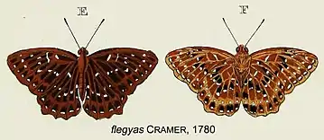 - Papilio flegyas Cramer, 1780: 158, pl.280, figs E,F.