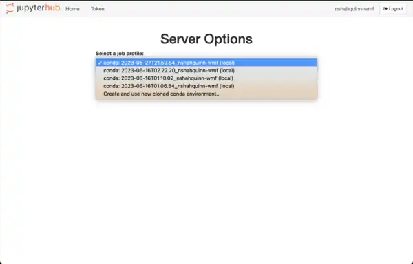 - Navigate to the JupyterHub control panel by selecting File → Hub Control Panel in the Jupyter interface or navigating to localhost:8880/hub/home
