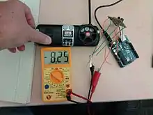 The next step was to figure out what Vin on the arduino was. Was there enough power coming out of that pin to power the RC receiver? A test was made. A 9 volt wall adapter was plugged into the arduino. 8.3 volts appeared on the pin. But could enough current be drawn from this pin? Would it cripple the Arduino?