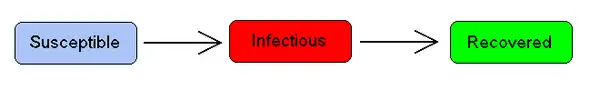 Each member of the population typically progresses from susceptible to infectious to recovered. This can be shown as a flow chart in which the boxes represent the different compartments and the arrows the transition between compartments. An arrow from recovered (R) back to susceptible (S) might be added if the patients loose the immune status after a while. That is similar to the status of patients must refresh their vaccination after a number of year. For some diseases one infection or one vaccination is sufficient for life time. COVID-19 is a new disease, so it difficult to estimate in 2020 how the immune system will be prepare for a new exposure to the Corona virus, if the patient recovered.
