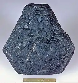 Hauyne, haüyne or hauynite occurs in Vesuvian lavas in Monte Somma, Italy.[9] It is a tectosilicate mineral with sulfate, with endmember formula Na3Ca(Si3Al3)O12(SO4).[10] It is a feldspathoid and a member of the sodalite group.[11][12] Haüyne occurs in phonolites and related leucite- or nepheline-rich, silica-poor, igneous rocks; less commonly in nepheline-free extrusives[13][11][12][14] and metamorphic rocks (marble).[11]