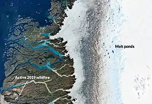- 1 2 3 4 5 Carolyn Gramling (2 August 2019). "The Arctic is burning and Greenland is melting, thanks to record heat". Science News. Retrieved 12 August 2019.