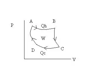 Since it is a cyclic process, ∆U = 0. Thus, W = Qtotal W = Qh – Qc