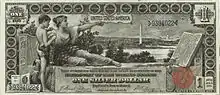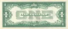 - 1890: One dollar Treasury or "Coin Notes" were issued for government purchases of silver bullion from the silver mining industry. The reverse featured the large word ONE in the center surrounded by an ornate design which occupied almost the entire note.