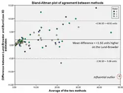 Objective: Measure time required to determine total body surface area (TBSA) burned (%TBSA) using the Lund-Browder chart and BurnCase 3D®, and calculate discrepancy between the two methods' %TBSA estimates. Methods: We asked 3 burn experts with 7 to 9 years of experience to participate in our experiment by estimating TBSA burned (%TBSA) for 26 subjects with a total of 262 photos, based on the Lund-Browder chart and the BurnCase 3D. We also measured time required for each estimation. Results: Estimations via the Lund-Browder chart and the BurnCase 3D showed statistically significant differences for Observers 1 and 2 (p < 0.05), but not for Observer 3 (p = 0.11). Inter-observer variability was insignificant among the observers (p = 0.31). When using the BurnCase 3D, burn estimation was consistent across the 3 participants (p = 0.31), yet the time spent for each method was significantly different (p < 0.05) from using the Lund-Browder chart and the time spent for estimation did not statistically vary (p = 0.20). Time spent on burn estimation varied when using either the Lund-Browder chart or the BurnCase 3D for all participants (p < 0.05). Conclusion: Using the BurnCase 3D over the Lund-Browder chart produced slightly different estimations for TBSA burned but estimation results stayed stable across inspectors. Due to the small sample size however, further investigation is necessary. Full text | Download doi: 10.15347/WJM/2020.002