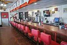 They're generally relatively inexpensive and specialize in classic American fare — hamburgers, sandwiches, steak & potatoes, etc. Typically they will have some pies and cakes available for dessert. Most have fairly extensive breakfast menus. If you want to sit at a table, the waitstaff will usually seat you, or there is usually a counter near the front where you can seat yourself.