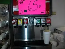 Many restaurants, especially those offering free refills, place the soda machine in the dining area. If you order a soda and later want water, there is often a small lever near the ice machine to dispense water, using the same nozzle as one of the sodas. Many newer machines use touch screens to make a selection, and will simply make water a separate listing. These touchscreen machines will often allow for various flavors to be added to the drink selected, such as adding cherry flavoring to cola.