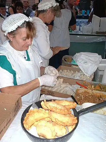 - árabes, with ground meat and onions. Originally from Middle Eastern cuisine, these are different from the rest of the empanadas; triangular in form, and the filling isn't boiled but the meat is left to simmer in onion and lemon juice whereafter the empanadas are baked.