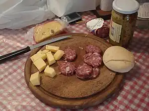 In the afternoon and before dinner there are two "informal" meals, that some skip. The merienda is eaten between 16:00 and 18:00 and is comparable to the British afternoon tea. This meal is commonly composed of coffee or maté together with pastries (criollos or facturas). Picada, eaten around 18:00-19:00 or after work and usually with friends or work colleagues is composed of salty snacks (cheese, sausages) and a beer.