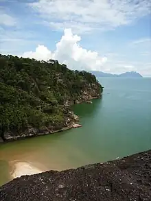 - Kecil trail. A one and a half hour trek which ascends the forested hills overlooking Telok Assam, reaching a plateau covered in scrub vegetation, and continues along a sandy path lined with carnivorous pitcher plants, before reaching a cliff top with stunning views of the secluded bay below and the famous sea stack just offshore. A 10 minute descent through cliff vegetation brings you to one of the best beaches in the park.
