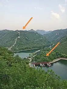 - Xiangshui Lake, Dazhenyu Village, Bohai Township. The hiking trail is a circuit and goes past partially restored segments of the Great Wall. There is a break in the Great Wall for what was once the Moshikou Pass, which was a strategic gateway. The pass was replaced by a dam constructed in the 1970s. A highlight of the Xiangshui Lake section is a segment of the wall running along a ridge that leads to the top of a cliff overlooking the gap that was the Moshikou Pass. Appropriately the segment is called the Lianyunling Great Wall, meaning “a ridge linked to the sky". It's not possible to climb the wall to the peak but from below the remnants of the wall structure looks like a shadowy mountain hideout. The underwhelming Xiangshui Lake Great Wall Plum Blossom Exhibition in early spring draws big crowds. (updated Mar 2019)