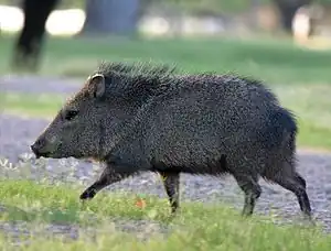 Big Bend is a wonderful place to see a wide variety of wildlife but keep in mind they really are "wild". Never try to touch or feed an animal; not only will it make them unnaturally habituated to human contact, but they are also potentially dangerous. Some, such as deer or javelina, can cause you serious physical harm (javelinas, cute as they may be, have very sharp tusks). Others, such as raccoons, rodents, or bats, may carry nasty diseases. Poisonous snakes, scorpions, spiders, and centipedes also live here though are usually active at night. They often seek safety in dark places; check inside unattended shoes and sleeping bags before using them and watch where you step and place your hands — they like to hide in holes, crevices, and under rocks. Be wary of spines and thorns from cacti and other plants — sturdy shoes and pants offer some protection.