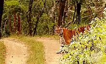 Tigress crossing the road at B.R. Hills, Chama Raja Nagar