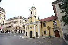 'Fővám tér' take trolley 83 to Horváth Mihály tér), ☏ +36 1 3230221, fax: +36 1 3136313, jozsefvaros.plebania@gmail.com. Office hours: M 12:30-16:30, W 08:30-16:30, F 08:30-12:30. Monument. Built in 1797–1798, in copf style according by plan József Tallher, rebuilt by Kasselik Fidél in 1814, remodelled in eclectic style by Elek Barcza in 1891-1895.
