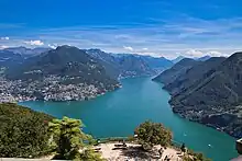 The exclave is on the edge of Lake Lugano, so seeing the lake is a large attraction of the town. Across the lake, the mountains of San Salvatore and Monte Brรจ can be seen to the west and north respectively.