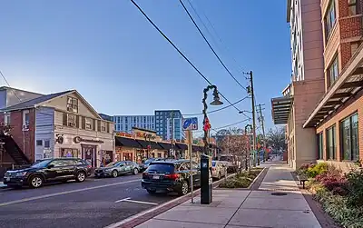 - R. J. Bentley's, 7323 Baltimore Ave, β +1 301 277-8898. Outdoor seating, several bars inside with more seating in an adjacent room. Part of a very lively bar scene at night with Cornerstone next door. Students frequently go back and forth between the two bars through out the night.
