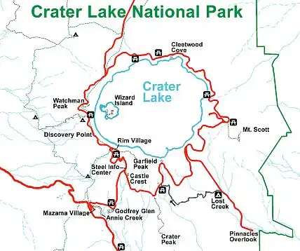 | Routes through Crater Lake National Park |