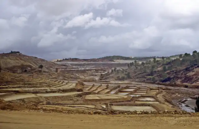 In the foothills of the Sierra Morena mountains, the Riotinto-Nerva mining basin is located in one of the largest polymetallic sites on the planet, the Iberian pyrite belt. During the 19th and 20 centuries, it was the biggest exporter of these raw materials in the world. The Riotinto Heritage Area shows how human activity has impacted the shaping of the landscape, transformed by empty open-pits left by extraction, the accumulation of waste and the construction of a large array of infrastructure. These are reassembled in a new landscape marked by the steep slopes of the natural hillsides, the waste tips, the blasting and the strip pits, and by the gullies of the Río Tinto river—named as such due to its bright red colour, caused by the volume of iron that accumulates in its waters- on the road to the south.