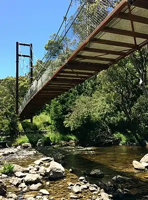 - Thredbo Valley Trail (or Thredbo Valley Track) in Kosciuszko National Park. It's only open during the summer between November and May, and only if conditions permit (snow regularly covers the trail). The trail passes through the impressive alpine valley near Thredbo and eventually onto the impressive suspension bridge.