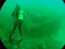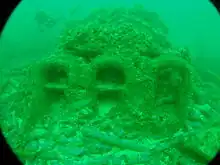 Scattered wreckage of a historical wreck of great cultural significance. The wreckage includes remains of the paddle wheels, boiler and engine, which is a very early model and quite interesting in design. There are also a few anchors, cannon and similar generic type artifacts.